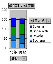 但是,在“销售人员”字段中所创建的计算项将显示为图例中所代表的数据系列,同时在图表中显示为每个分类中的数据点。
